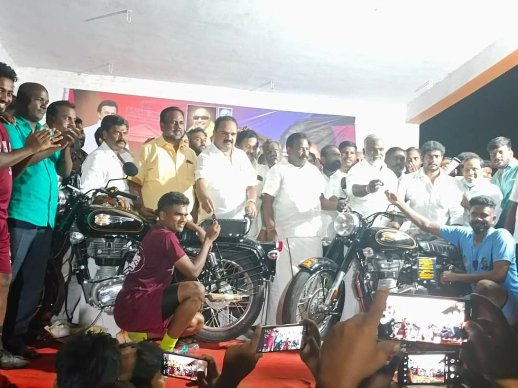 வெற்றி பெற்றவர்களுக்கு 10 லட்ச ரூபாய் மதிப்பிலான இரண்டு இருசக்கர வாகனம் மற்றும் அணியில் கலந்து கொண்ட வீரர்களுக்கு தங்க நாணயத்தை பொன்னேரி சட்டமன்ற உறுப்பினர் துரை சந்திரசேகர், திருவொற்றியூர் சட்டமன்ற உறுப்பினர் கே.பி.பி.சங்கர் ஆகியோர் பரிசாக வழங்கினர்.