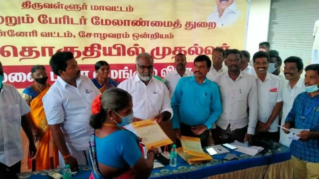 செப்டம்பர் மாதம் 03 அன்று பொன்னேரி சட்டமன்ற உறுப்பினர் துரை சந்திரசேகர் MA. BL, MLA அவர்களின் முயற்சியில் உங்கள் தொகுதியின் முதல்வர்  திட்டத்தின் கீழ் பொன்னேரி வட்டம் சோழவரம் ஒன்றியத்தில் அமைந்துள்ள அழிஞ்சிவாக்கம் கிராமத்தில் மக்களுக்கு இலவச வீட்டு மனை பட்டா வழங்கப்பட்டது. இதில் சோழவரம் ஒன்றிய பெருந்தலைவர் அவர்கள் பொன்னேரி வருவாய் கோட்டாட்சியர் அவர்கள் பொன்னேரி வட்டாச்சியார் அவர்கள் மற்றும் வருவாய் ஆய்வாளர் அவர்கள் கலந்து கொண்டனர்.